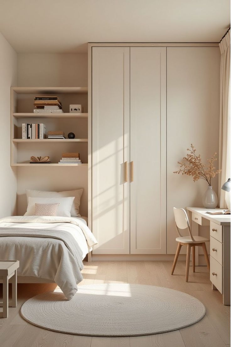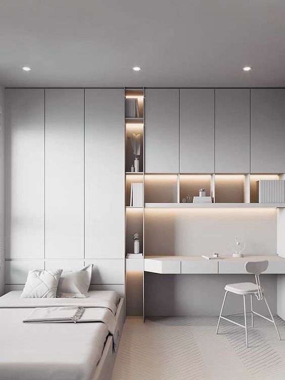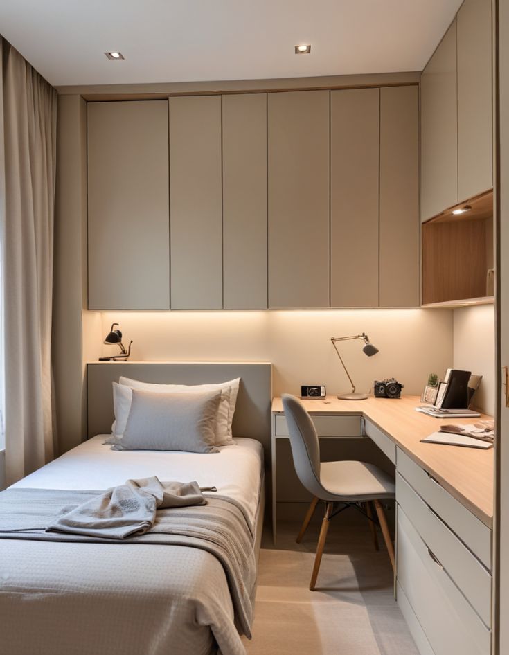 Đối với phòng ngủ nhỏ, sử dụng các giải pháp lưu trữ như hộp lưu trữ dưới giường, kệ nổi, giá treo và đồ nội thất đa năng có thể giúp tối đa hóa không gian và giữ cho căn phòng gọn gàng và ngăn nắp.